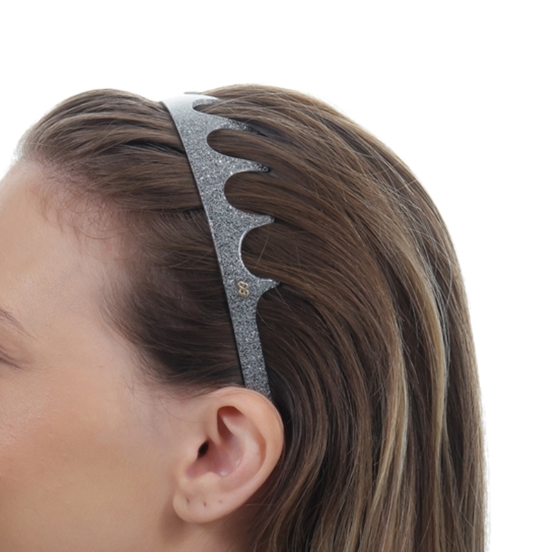 Tiara em acrílico de alta qualidade, abaulada, com dentes largos na cor transparente com glitter prateado.