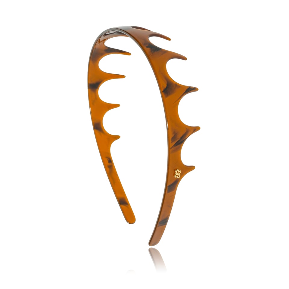 Tiara em acrílico de alta qualidade, abaulada, com dentes largos na cor marrom.