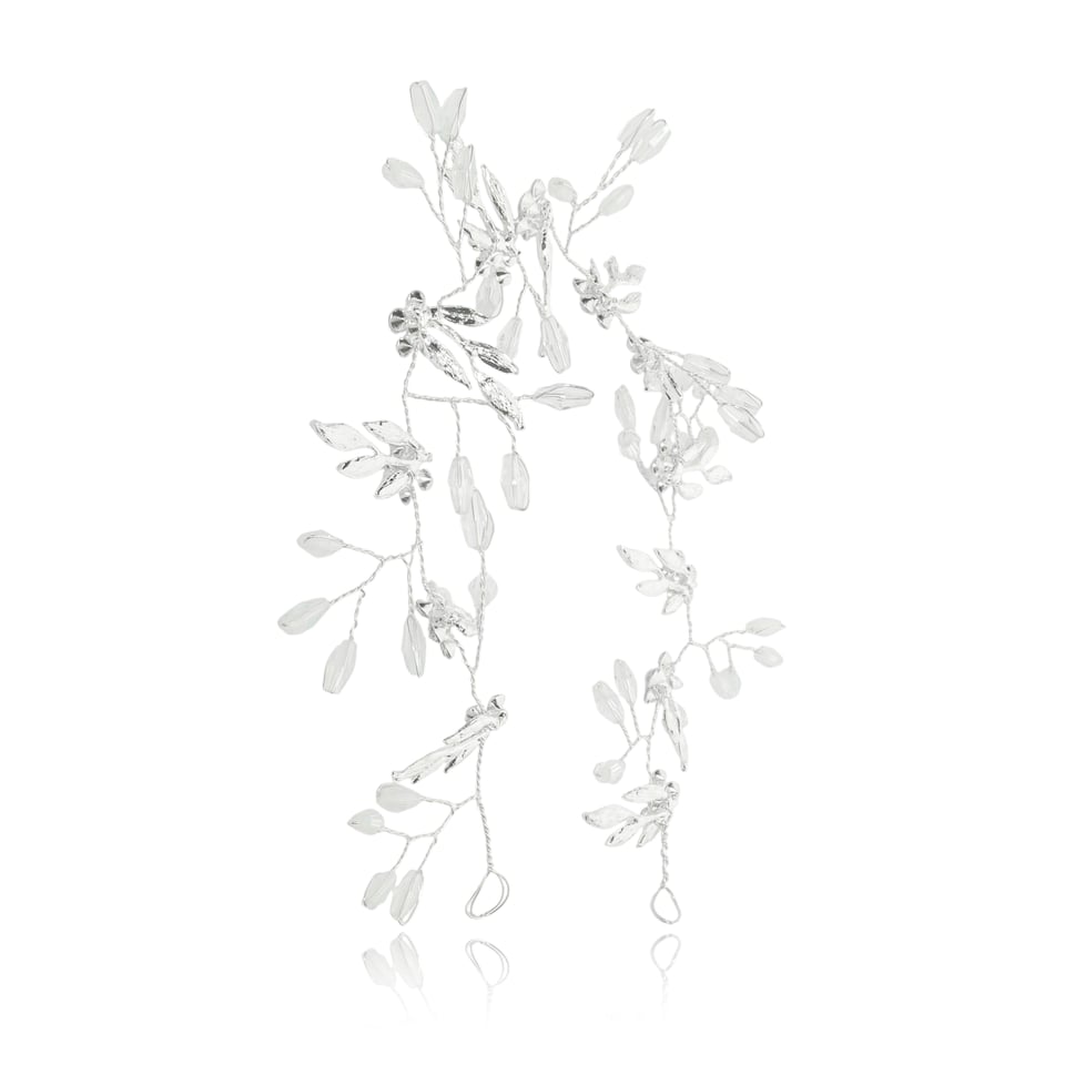 Tiara coroa maleável banho prateado com aplicação flores de cristais na cor branco (cristal) e miolo de pérolinhas.