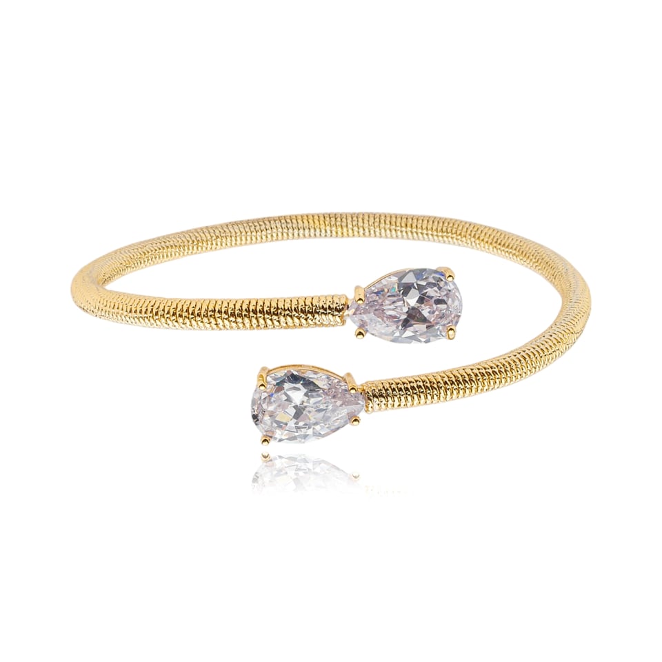 Pulseira aro flexível banho de ouro com cravação de zircônia em gota na cor branco (cristal).