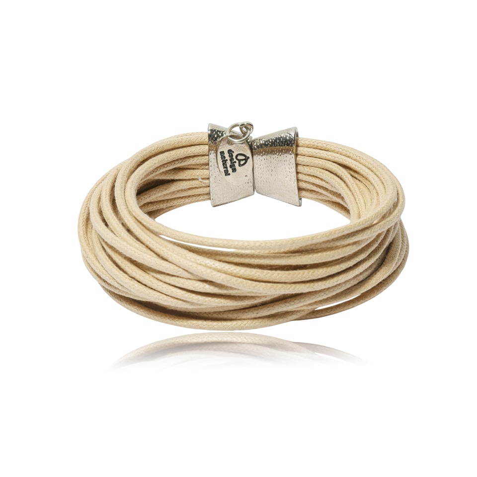 Pulseira produzido artesanalmente em fios 100% de algodão na cor bege.