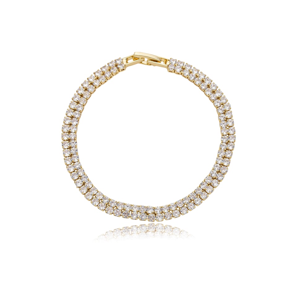 Pulseira banho de ouro com duas fileiras de zircônias cravadas na cor branco (cristal).