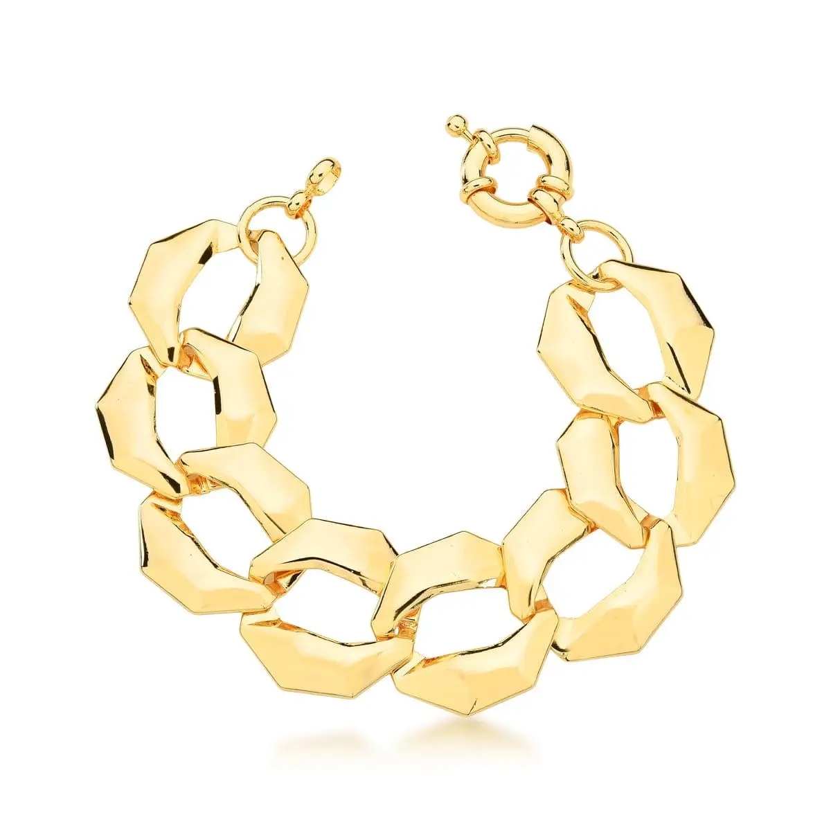 A pulseira de elos groumet é uma semijoia que combina estilo clássico e sofisticação contemporânea. Seu design curvo e trabalhado apresenta elos lisos, vazados e perfeitamente entrelaçados, criando um visual elegante e cheio de personalidade. O fecho boia complementa a peça com praticidade e um toque moderno no acabamento.