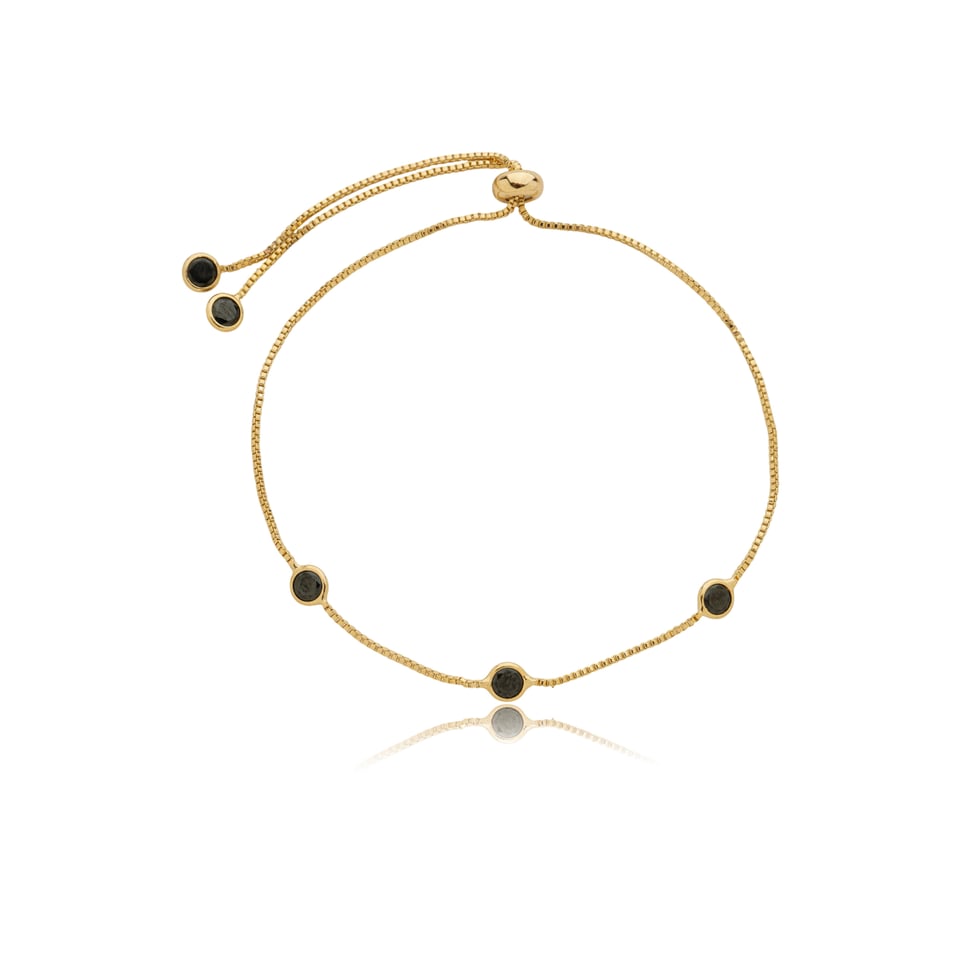 Pulseira ajustável banho de ouro com zircônias redondas na cor preta.