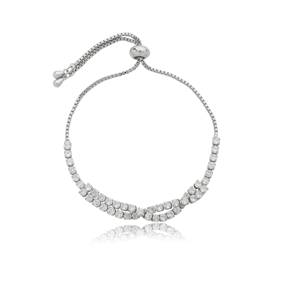 Pulseira ajustável banho de ródio com zircônias redondas cravejadas na cor branco (cristal).