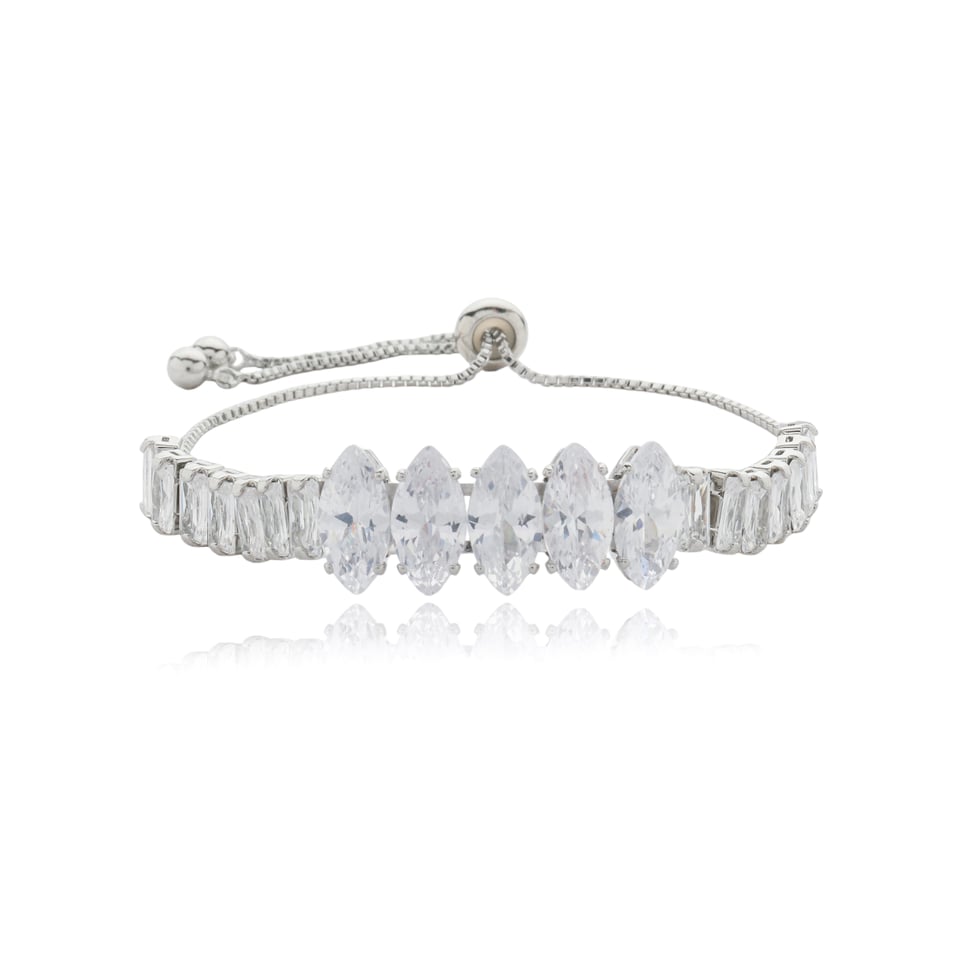Pulseira ajustável banho de ródio com zircônias cravejadas na cor branco (cristal).