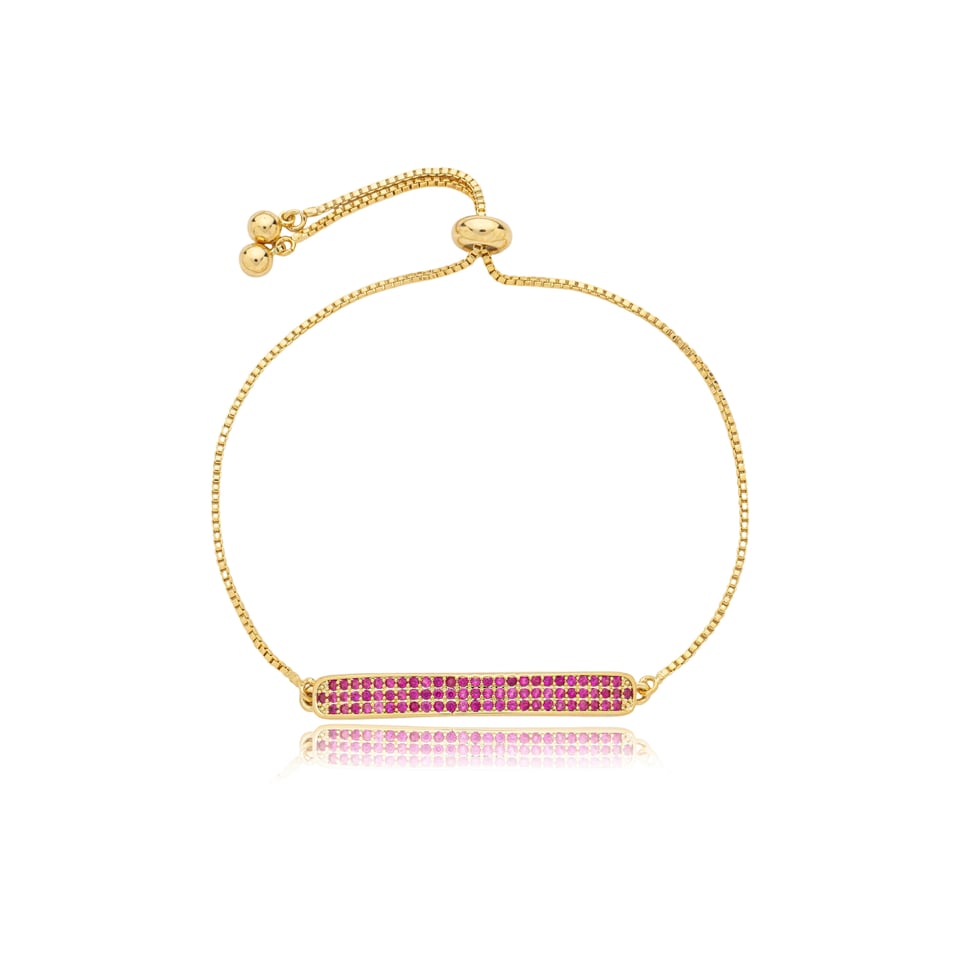 Pulseira ajustável banho de ouro com cravação de micro zircônias na cor pink.