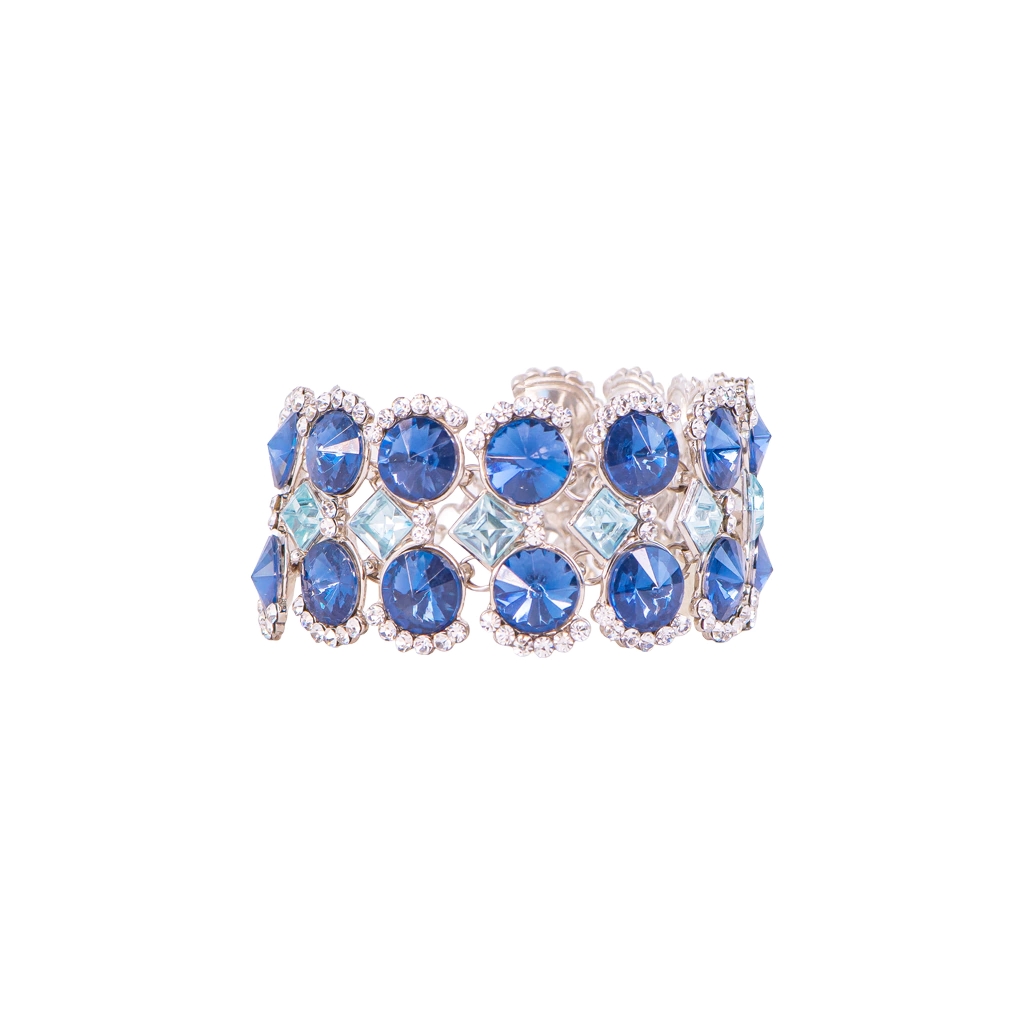 Esta pulseira no banho prateado, cravejada de cristais combina delicadeza e intensidade em um design elegante. Os cristais lapidados refletem a luz com suavidade, enquanto as pedras Rivoli na cor azul marinho adicionam um toque de luxo e destaque, tornando a peça perfeita para compor produções sofisticadas em qualquer ocasião.