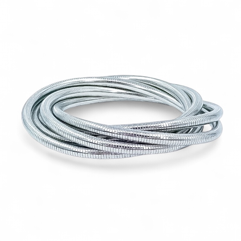 Pulseira banho de ródio tipo mola entrelaçadas.