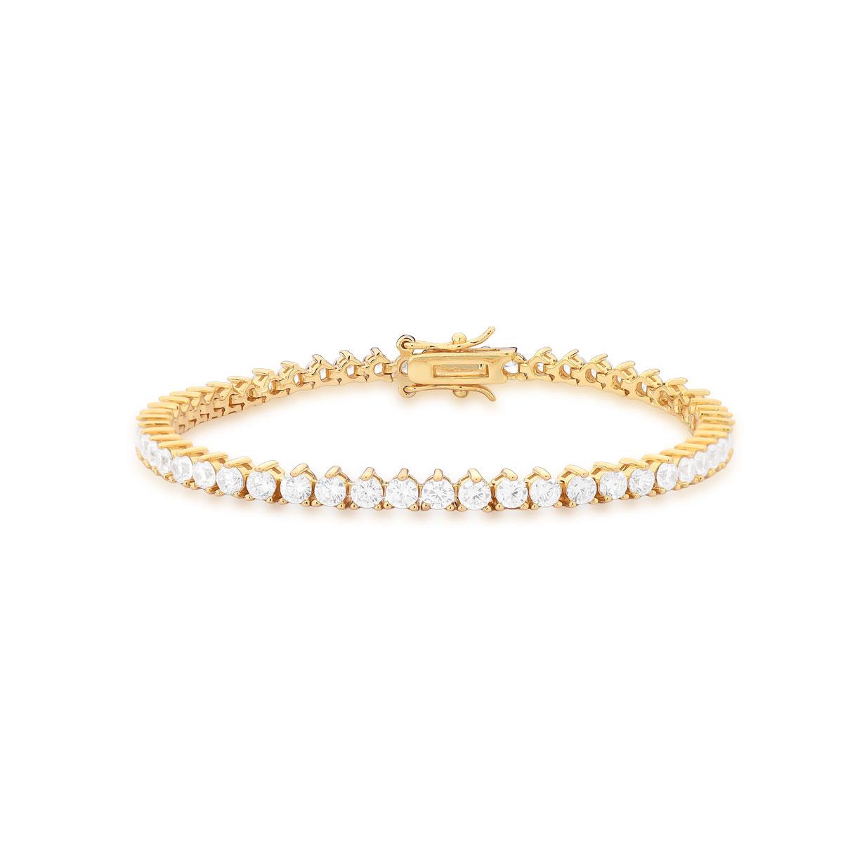 Pulseira banho de ouro com cravação de zircônias na cor branco (cristal).