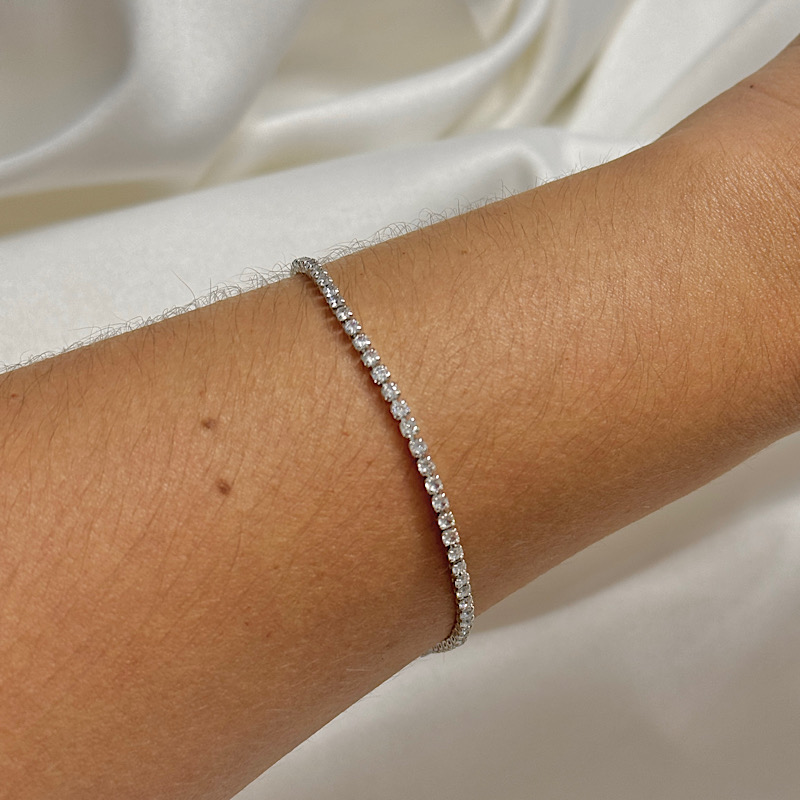 Pulseira banho de ródio com cravação de micro ziircônias na cor branco (cristal).