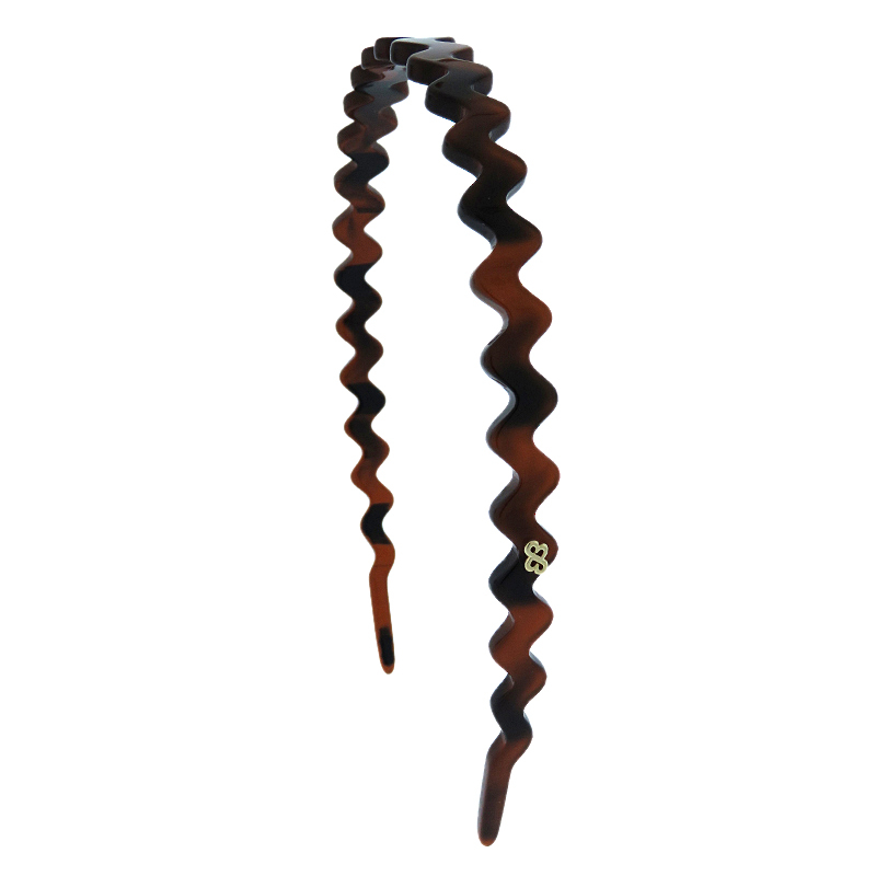 Tiara em acrílico resistente ondulada na cor marrom tartaruga.