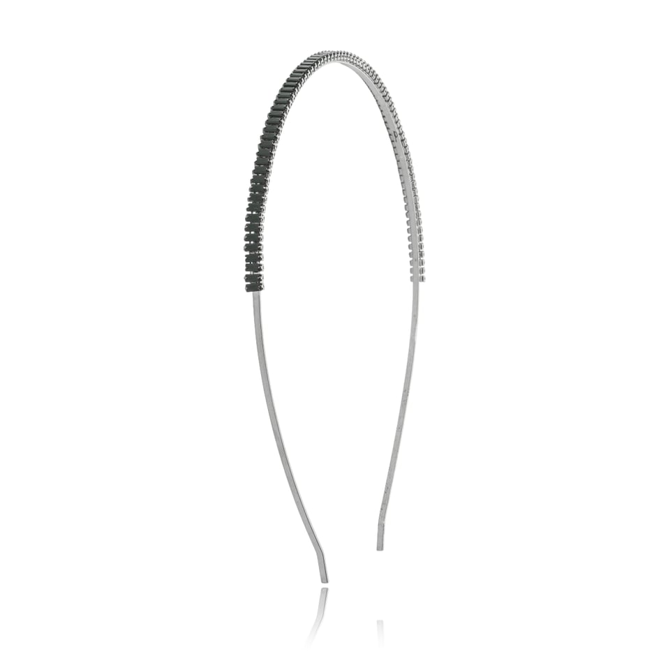 Tiara metal grafite com aplicação de zircônias baguetes na cor preta.