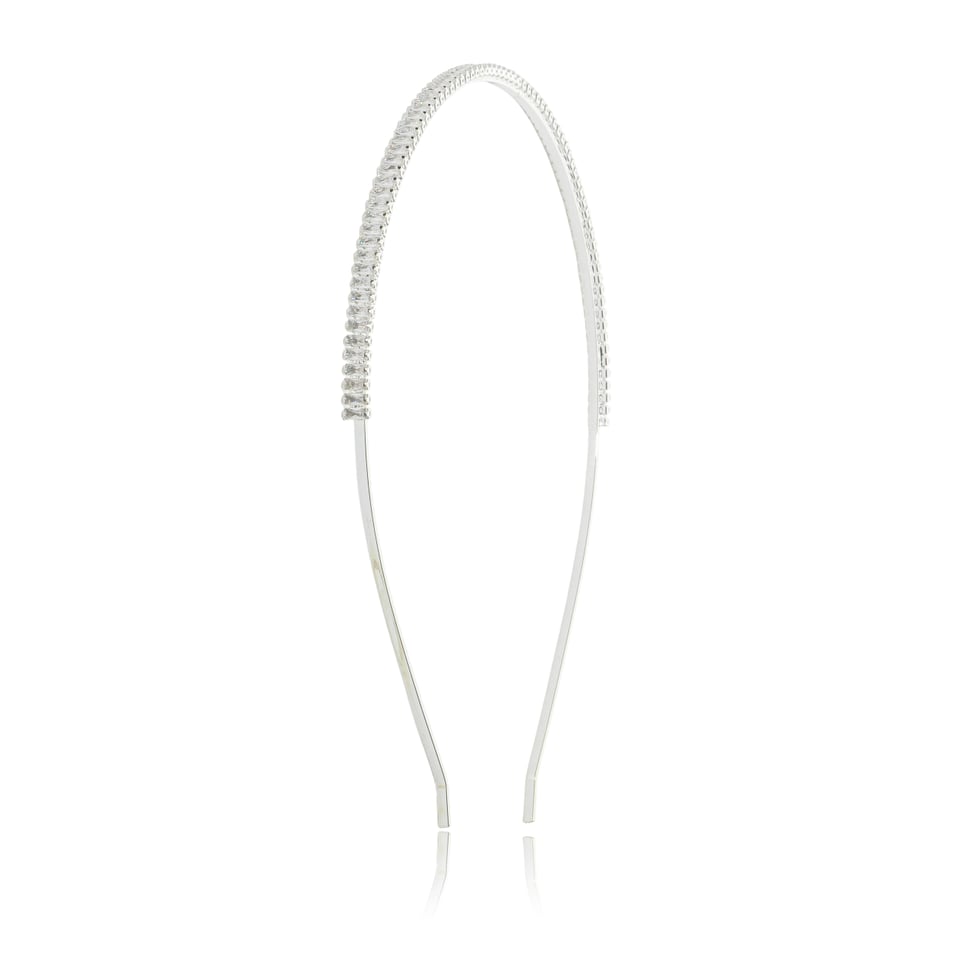 Tiara metal prateado com aplicação de zircônias baguetes na cor branco (cristal).