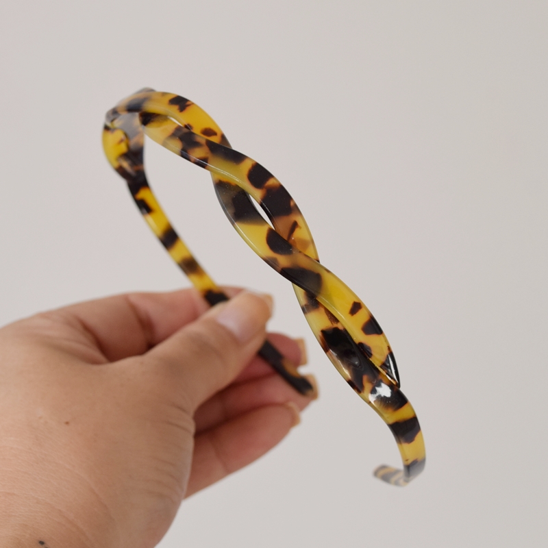 Tiara de acetato trançada na cor marrom tartaruga.